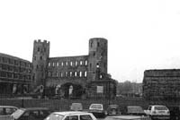 La porta Palatina risultato della fondazione di Torino come colonia romana fatta ai tempi di Augusto, da cui la struttura urbanistica da accampamento militare a forma quadrata attraversato da due perpendicolari fra loro, il decumanus maximus e il cardo maximus sul cui lato nord sorge la porta che ci interessa. Nei pressi: P.zza San Giovanni e il Duomo con la Sacra Sindone: un'immagine sacra, uno dei primi esempi di body art, materia di studi scientifici...