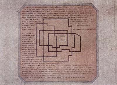 Ha pensato di intervenire nel pavimento d'ingresso dell'Hotel Palace di Bologna e di intarsiare le pareti della stanza in cui dorme tutte le settimane quando vi si reca per insegnare all'Accademia di Belle Arti. Per gli intarsi e le decorazioni l'artista userà le forme consuete della pianta della sua casa ad indicare che l'arte è dimora, luogo radicato, stanza come in gran parte della tradizione italiana in cui pittura, scultura, decorazione, ecc. è stata pensata e realizzata per luoghi interni.