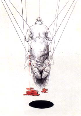 In tre giardini di Roma installerebbe altrettante sculture chine su un tavolo con sopra un bicchiere contenente un liquido color sangue. Le sculture, rappresentano figure di donna con abiti domestici, di quelli usati per le pulizie. I tre elementi: figura di donna, abiti domestici, sangue sono fondanti del lavoro dell'artista russo, in quanto segni della sofferenza come corpo, povertà e sangue. Si tratta di metafore, apparentemente comuni, ma che interrogano sui problemi fondamentali dell'esistenza umana.