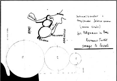 Polignano a Mare in the province of Bari is where one of Italy's most interesting artists was born: Pino Pascali. In this project Rosemarie Trockel pays homage to Pascali's work. She proposes a sculpture/"snowman" made of three marble balls with a bronze "carrot" nose. Inside the statue is running water which reaches the top of the head and transpires, dripping down onto the nose. Irony, games, and an antimonumental sculpture for Pascali, an artist who broke all the rules of sculpture, reviving art by toying with it.