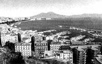 Napoli. Al centro del famoso golfo per bellezza del paesaggio, mitezza del clima, salubrità dell'aria, simpatia degli abitanti, città leggendaria e reale, sfiziosa, meravigliosa, divertente e lunatica: Napoli -tutto uno scenario, tutto un palcoscenico-, vi offre la vista di Castel dell'Ovo, Museo nazionale della Ceramica, la caratteristica via Chiaia, Porta Capuana, Spaccanapoli, la Chiesa dù Gesù, Munastero e Santa Chiara, la Cappella di S. Severo -con Cristo velato-, Duomo gotico -con tesoro di San Gennaro fammi a grazia-, Museo di Capodimonte, Museo Archeologico, Forcella -contrabando: droga, sigarette, Hi Fi, pistole, camorra-. Se salite fino a Posillipo godrete dell'incantevole panorama del golfo, completi di Vesuvio. Elemento morfologico fondamentale, vulcano alto 1277 m. con cratere di ca. 700; eruzioni gravi: 79 d.C. con Pompei, Ercolano e Stabia sommerse, 1631, 1737, 1794, 1872. Frequentatissima zona turistica alla quale si previene da numerose strade e con la ferrovia Circumvesuviana..