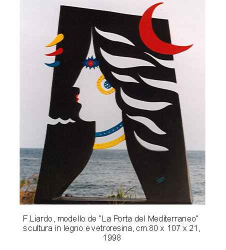 ''La Porta del Mediterraneo'' è la scultura emblematica di tutto il ciclo: il solo profilo di una testa di donna disegnato dalla perforazione d'un piano perpendicolare grandissimo adagiato sul suolo della costa mediterranea. La Porta è il punto d'incontro tra la civiltà orientale ed occiodentale all'alba del terzo millennio.