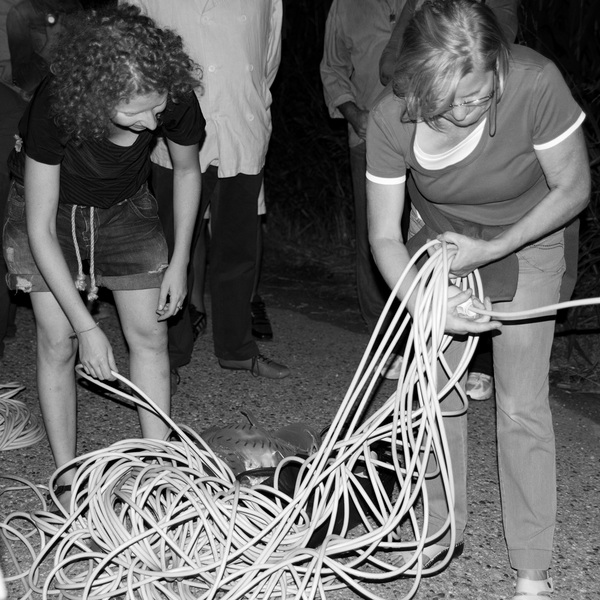 al fiume. La lunghezza del percorso è stata determinata dalla quantità di prolunghe collezionate dai partecipanti, per un totale di 1,7 km, il tempo impiegato è stato di circa 3 ore. Sono stati sciolti infiniti nodi, srotolate e riarrotolate matasse, attaccato e staccato prese elettriche, lanciati segnali e urla nel bosco; tutti hanno usato le mani e si sono sporcati i piedi.